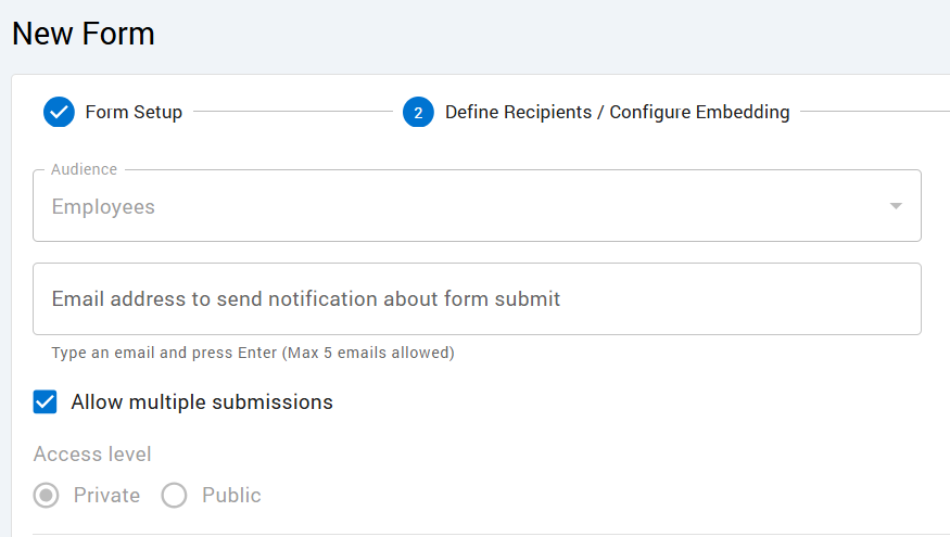 Once made live, a notification email will not immediately send out like in ordinary forms, instead the form can be found in the employees profile.