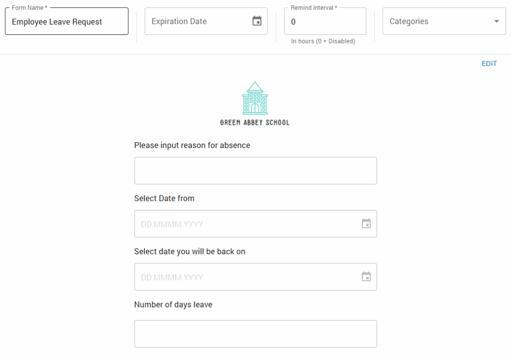 In this example, we are building an Employee Leave Request form where employees can submit a request of adsence whenever they need to.