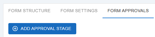 When building a form, we must decide whether the form needs an approvals workflow. If no approval is needed then simply click next or save the form. If the form does need an approval workflow, click to add an approval stage.