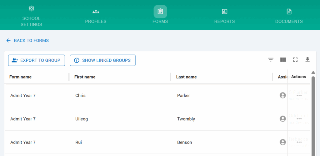 The Form Responses page is designed to manage and track the submission of forms assigned to various individuals. It allows filtering form responses by multiple attributes, submitting the form, and reviewing submitted form responses. It is also possible to download form responses as PDF’s using the Actions menu.