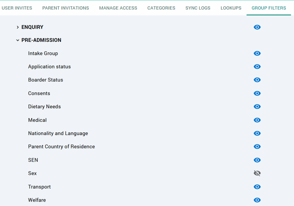 For example, a single-sex school will not need to filter students by sex or a school with no boarders will not need to filter students by their country of residence.