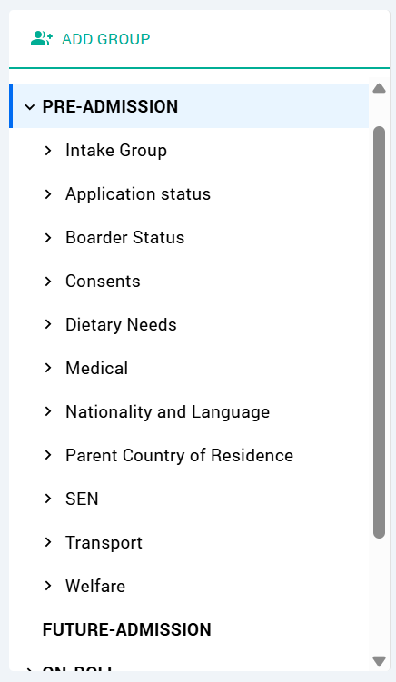 Group filters allow the school’s admin to manage visibility of groups in the filter tree across the platform. This enables the school to hide any filter groups that are not relevant or not needed.